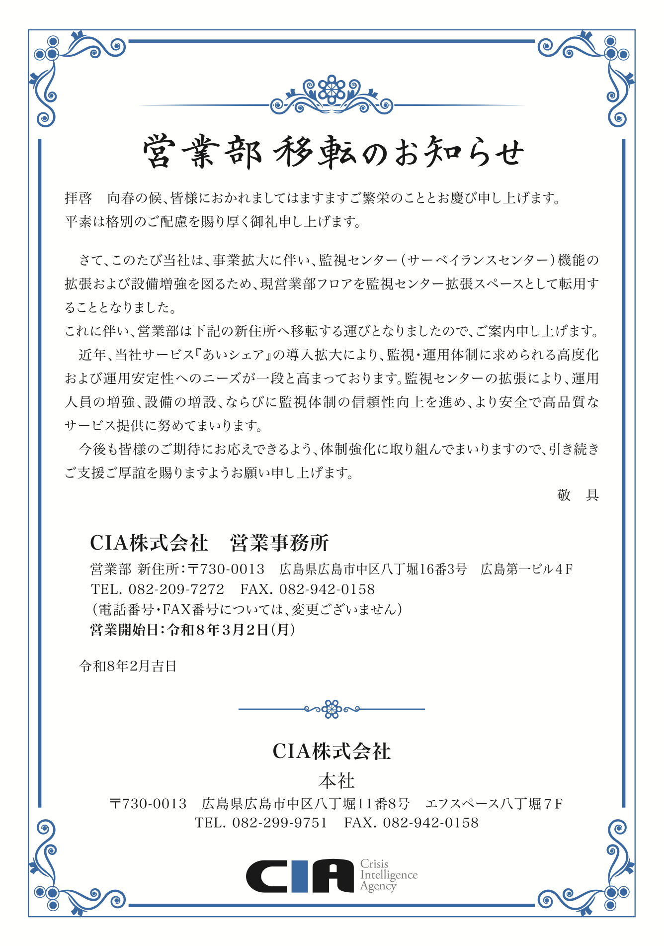営業事務所移転のお知らせ